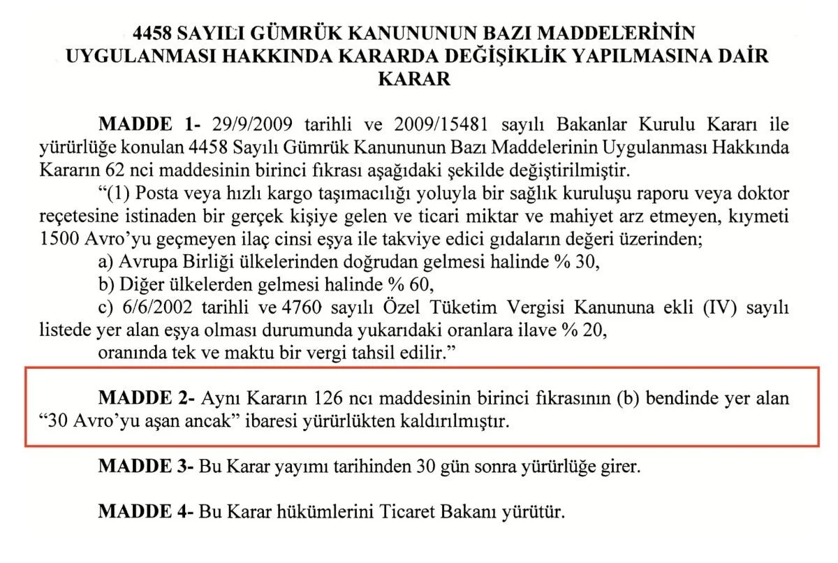Türkiye’de gümrüksüz alışveriş döneminde yeni bir döneme girildi. Hızla değişen ekonomik şartlar ve vergi politikaları kapsamında, yurt dışından yapılan alışverişlerde 30 euro eşik limiti tamamen kaldırıldı. Bu düzenleme ile birlikte artık yurtdışından gelen küçük paketler için uygulanan vergi muafiyeti sona ermiş oldu. Artık internet üzerinden yapılan tüm yurtdışı alışverişlerinde vergi ve gümrük işlemleri ayrı ayrı uygulanacak.