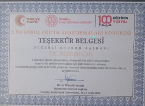 Kongrede Sarıyer’i temsil eden isim ise Tarabya Cevat Koçak Anadolu Lisesi Müdürü Dr. Burhan Can oldu. Bilim kurulu üyeliği, hakemlik ve oturum başkanlığı görevlerini başarıyla yerine getiren Dr. Burhan Can, hem akademik katkıları hem de aktif rolüyle büyük takdir topladı. Sarıyerli eğitimci, kongredeki çalışmalarıyla ilçesini temsil etmenin haklı gururunu yaşadı.